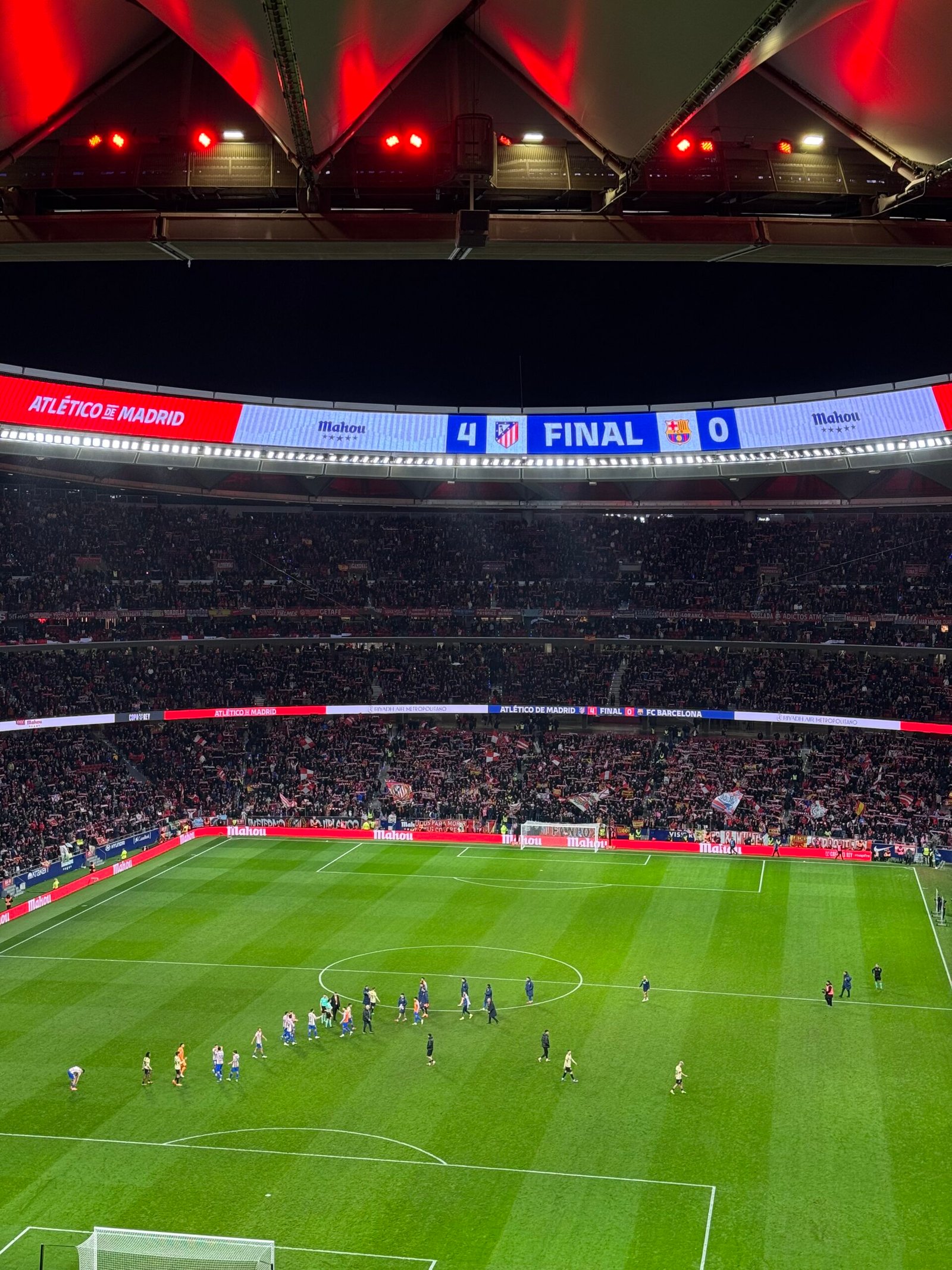 On February 12, 2026, Atlético Madrid produced a stunning first-half performance to defeat FC Barcelona 4–0 in the first leg of their Copa del Rey semi-final in Madrid at the Riyadh Air Metropolitano, where Diego Simeone’s side scored all four goals before half-time to take a commanding lead before the half.