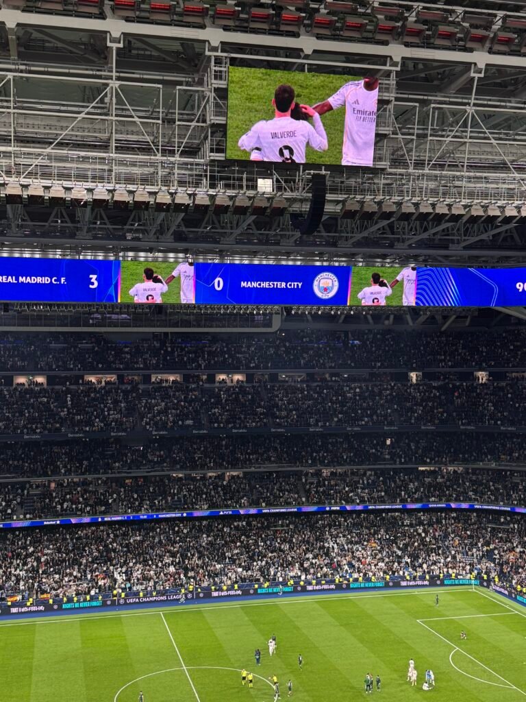 Real Madrid produced a memorable performance at the Bernabéu, overpowering Manchester City in a dominant display that leaves them firmly in control before the second leg in England at the Etihad Stadium. The match began with high intensity, with both teams analyzing how to break down their opponent. The first shot on target came from Real Madrid in the 8th minute, when Vini Jr. delivered a lofted ball behind the defence, and Brahim’s subsequent effort was deflected for a corner by Donnarumma. Manchester City responded in the 19th minute with a shot from Bernardo Silva that narrowly missed the target. Real’s intensity and commitment set the tone from the opening stages, with the breakthrough arriving during a remarkable spell led by Federico Valverde.