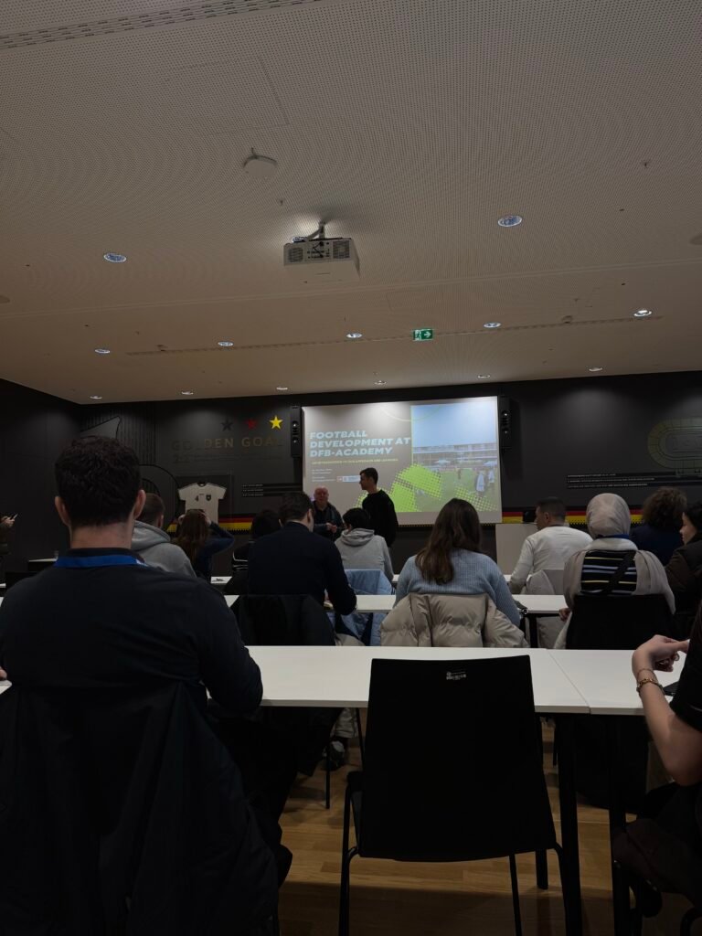 Our visit began with a series of on-site presentations addressing key strategic and operational areas, including the structure and objectives of Germany’s Football Development Team, the “Together We Rise” campaign in preparation for UEFA Women’s Euro 2029, insights into scouting and match analysis methodologies, and Germany’s strategic roadmap toward the FIFA World Cup 2026. Rather than a traditional governing body, the DFB is a highly integrated, high-performance organization where long-term strategy, development, and innovation are closely aligned.