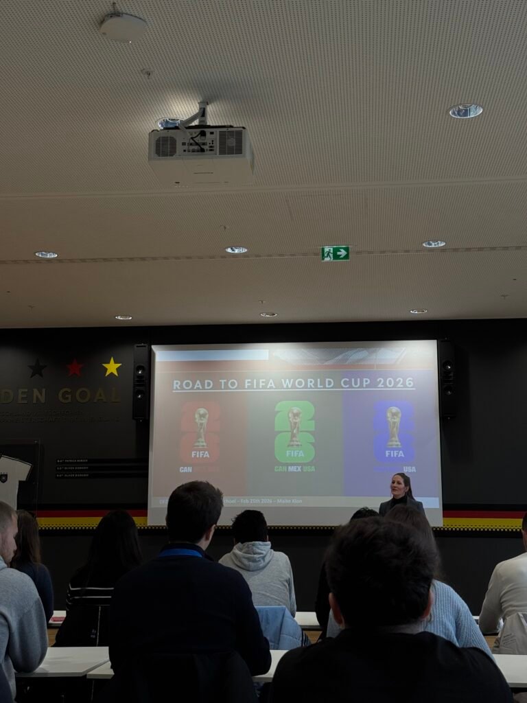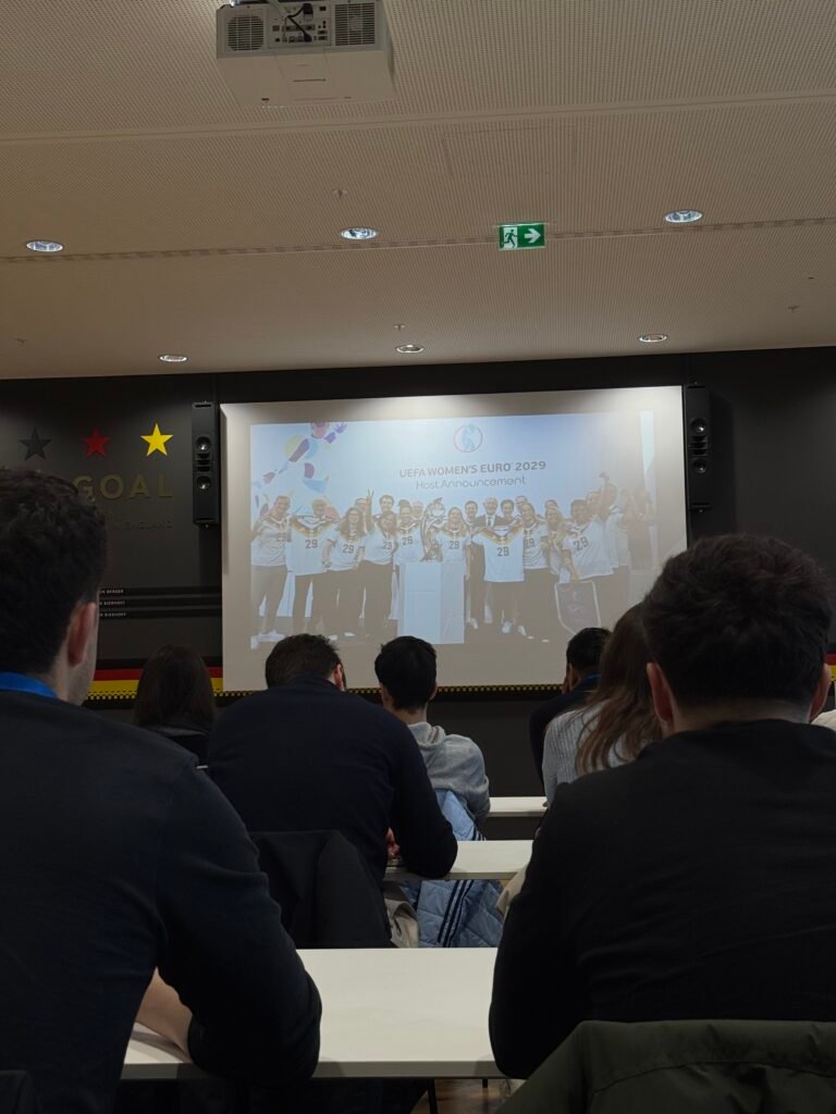 Following the presentations, we were given the opportunity to observe the final 15 minutes of a training session with the German Women’s National Team. Observing the session provided a direct example of how high-performance standards are applied in practice, reinforcing the connection between strategy and execution. We then participated in a guided tour of the German Football Association (DFB) headquarters, where we learned how the facility is strategically designed to support all operational and performance needs of German football and futsal.
