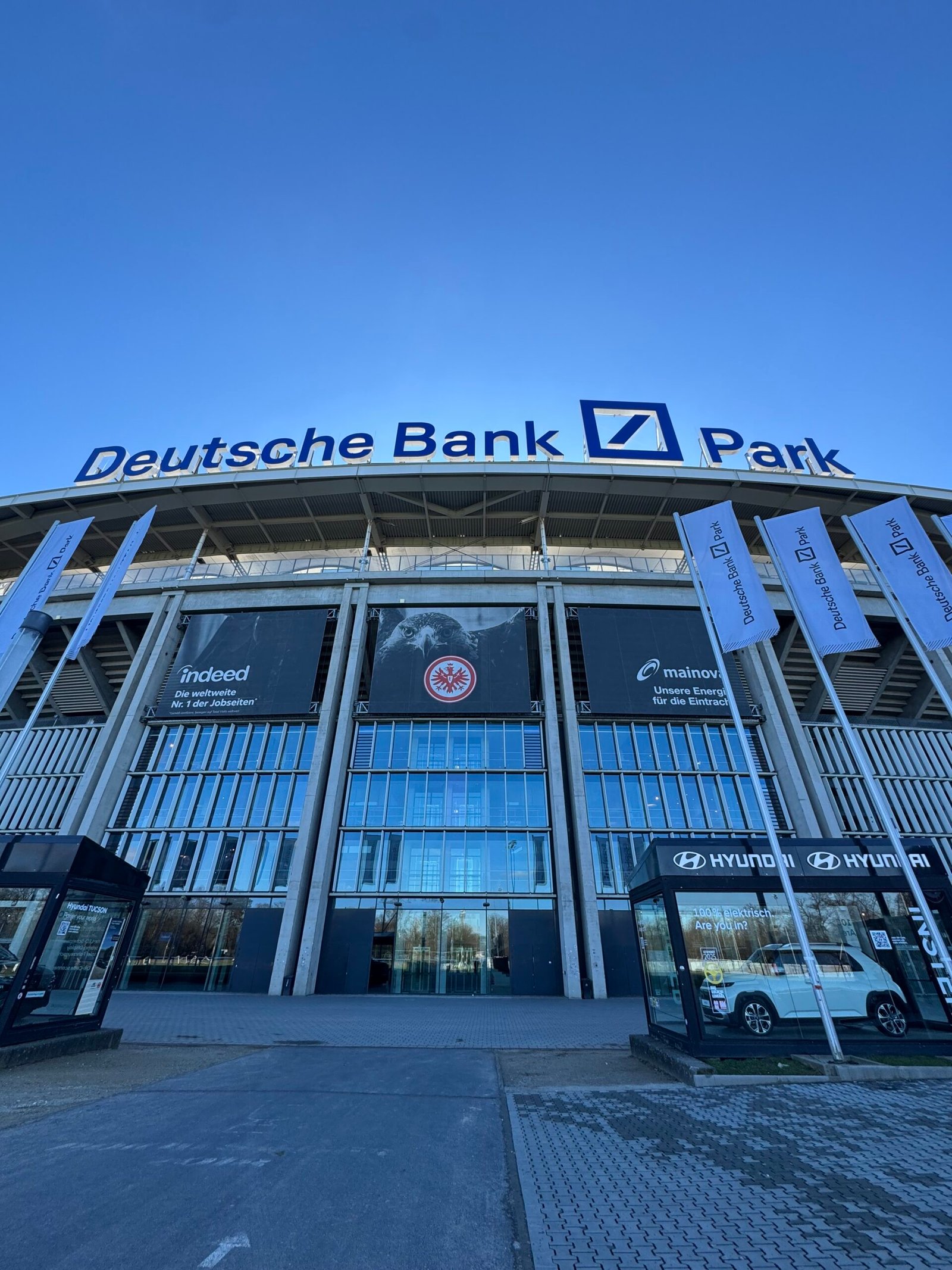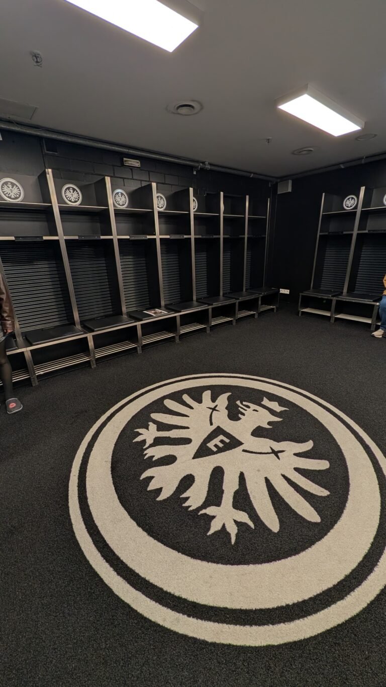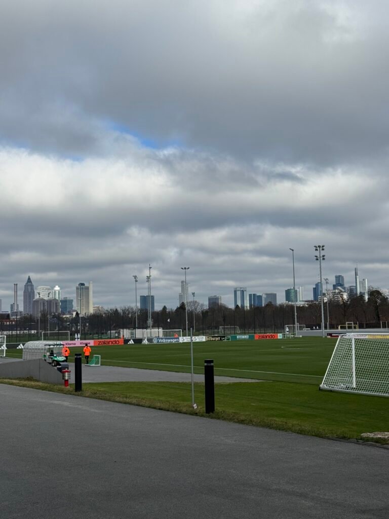 Upon arriving at the stadium, Eintracht Frankfurt’s first team was in training. We had the opportunity to briefly observe the session, and following its conclusion, the players rode their bicycles back to the dressing room, pausing along the way to engage with supporters. This moment reflected a unique balance between elite performance and strong community connection, which appears to be a defining characteristic of German football culture.