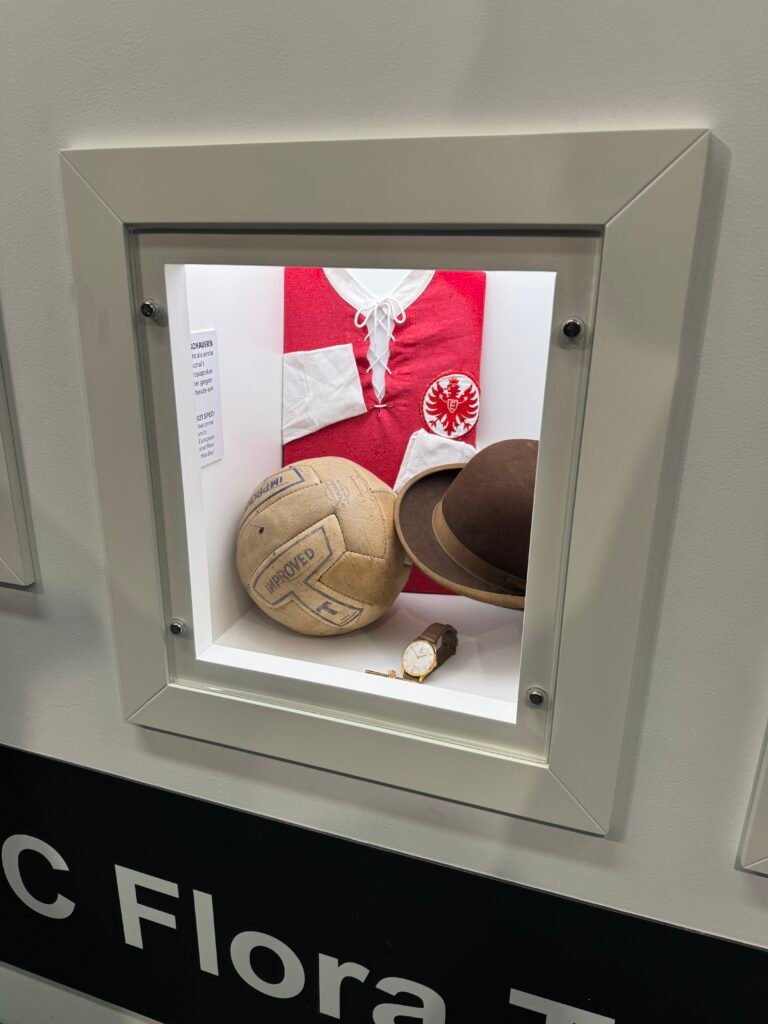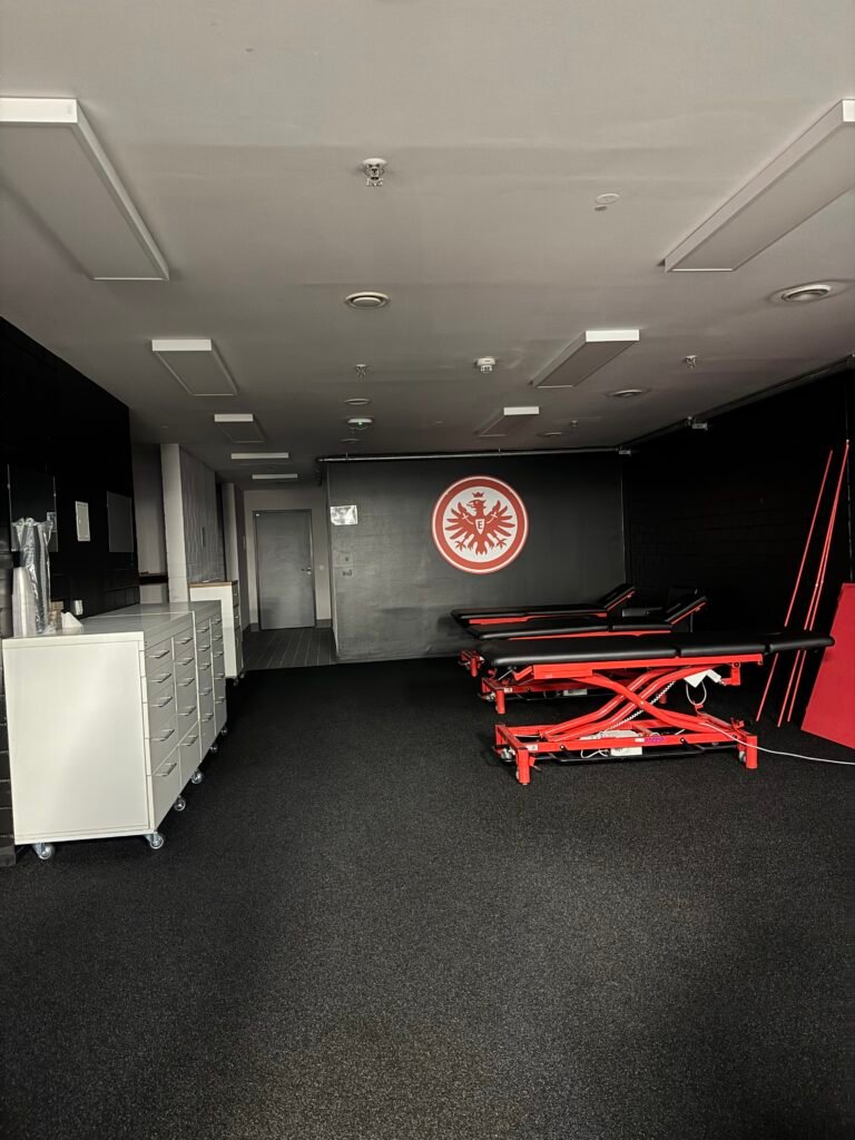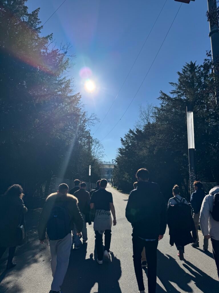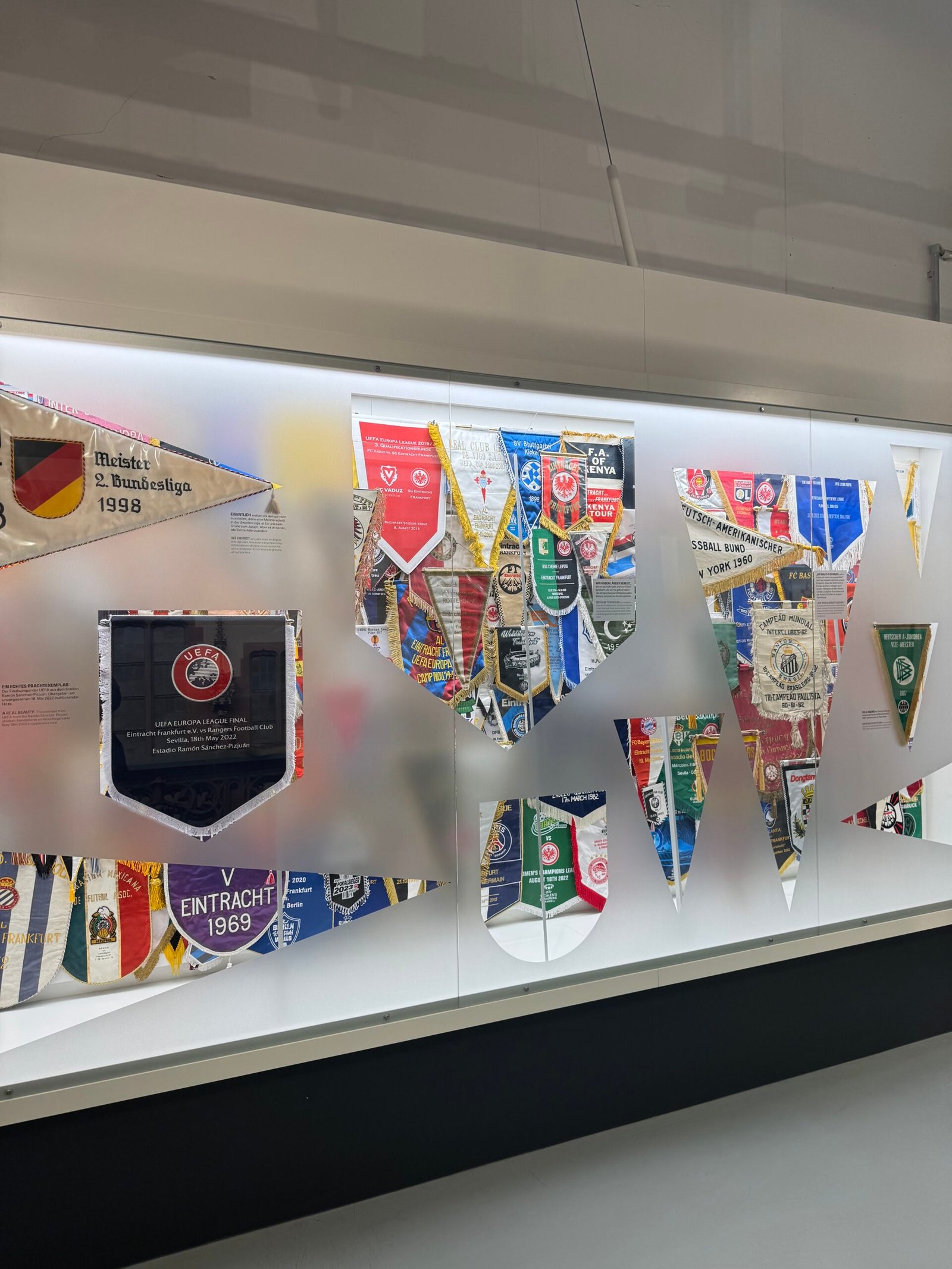 Upon arriving at the stadium, Eintracht Frankfurt’s first team was in training. We had the opportunity to briefly observe the session, and following its conclusion, the players rode their bicycles back to the dressing room, pausing along the way to engage with supporters. This moment reflected a unique balance between elite performance and strong community connection, which appears to be a defining characteristic of German football culture.