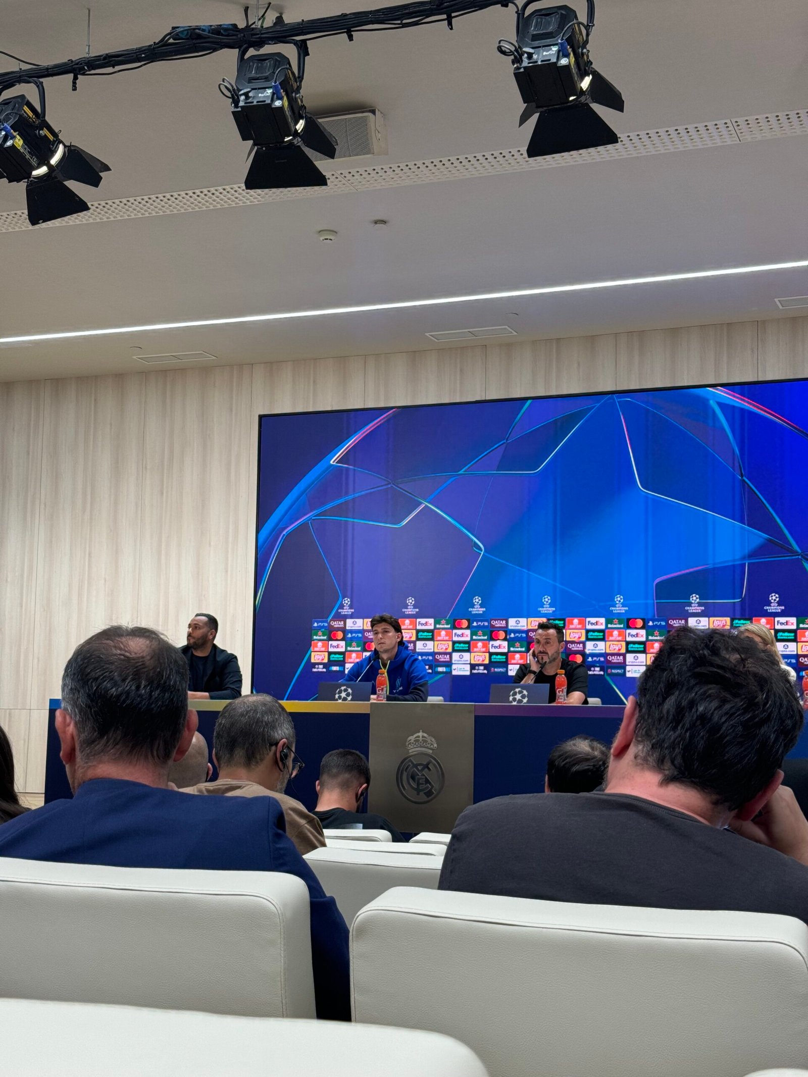 During the evening, I went to Bernabéu Stadium for the first time to attend a press conference for Marseille. This conference included head coach Roberto De Zerbi and Argentinian footballer Leonardo Balerdi.