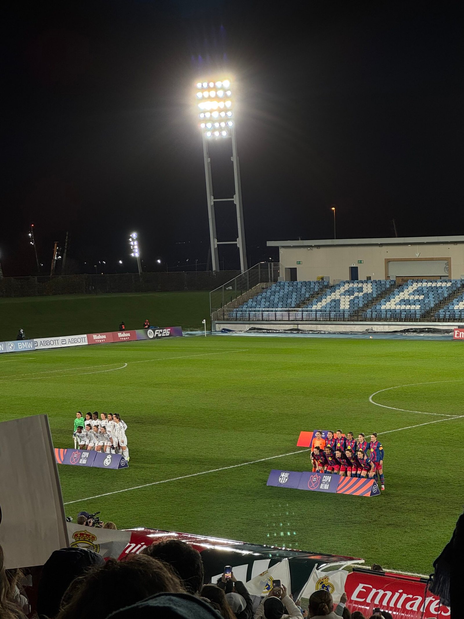 On February 5, 2026, Real Madrid Femenino faced FC Barcelona Femení for a place in the Copa de la Reina semifinals with an attendance of 3765 roaring fans mixed with supporters of both teams. Barcelona delivered a commanding 4–0 victory to eliminate Madrid and secure their spot in the next round, controlling possession, creating consistent scoring opportunities, and asserting their superiority from the opening whistle.