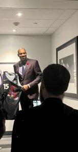 I am proud to have worked on a lot of different firsts in my career. There are so many highlights, but a few honourable mentions include the inaugural Toronto Maple Leafs Indigenous Heritage Night, the Toronto Raptors ‘ first-ever jersey retirement for Vince Carter and the inaugural season of the Northern Super League. I hope these moments will be remembered in Canadian sports history, and I am honoured to have contributed.