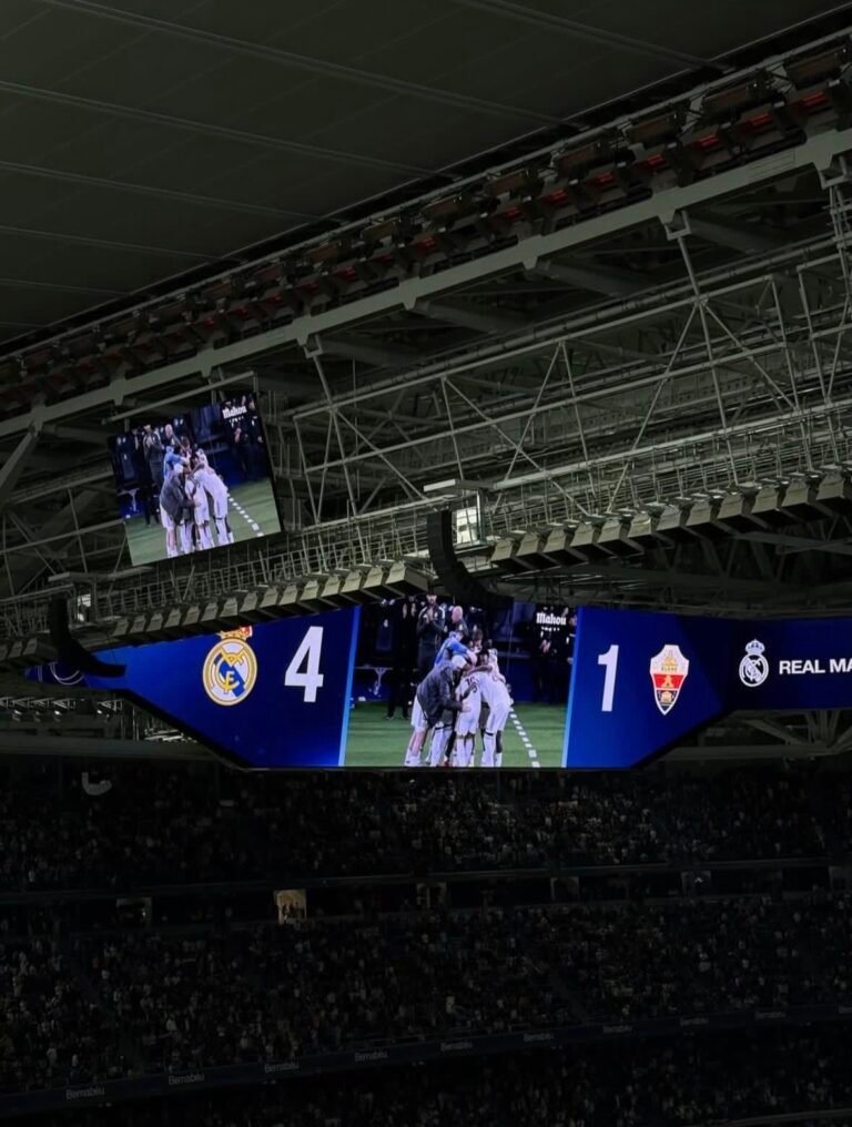The match ended 4–1 in favour of Real Madrid, with goals from Antonio Rüdiger (39’), Federico Valverde (44’), Dean Huijsen (66’), and Arda Güler (88’), while Elche’s lone goal came from an own goal by Manuel Ángel (85’). The result earned Madrid three more points in their pursuit of the La Liga title.