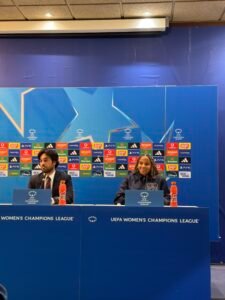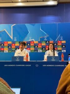 Later that evening, I had the opportunity to attend FC Barcelona Femení’s press conference, which consisted of the head coach Pere Romeu and Spanish football player Vicky López. The Catalan club had already completed their training session before arriving in Madrid.