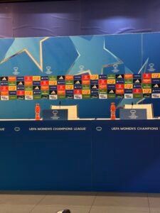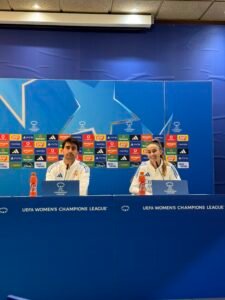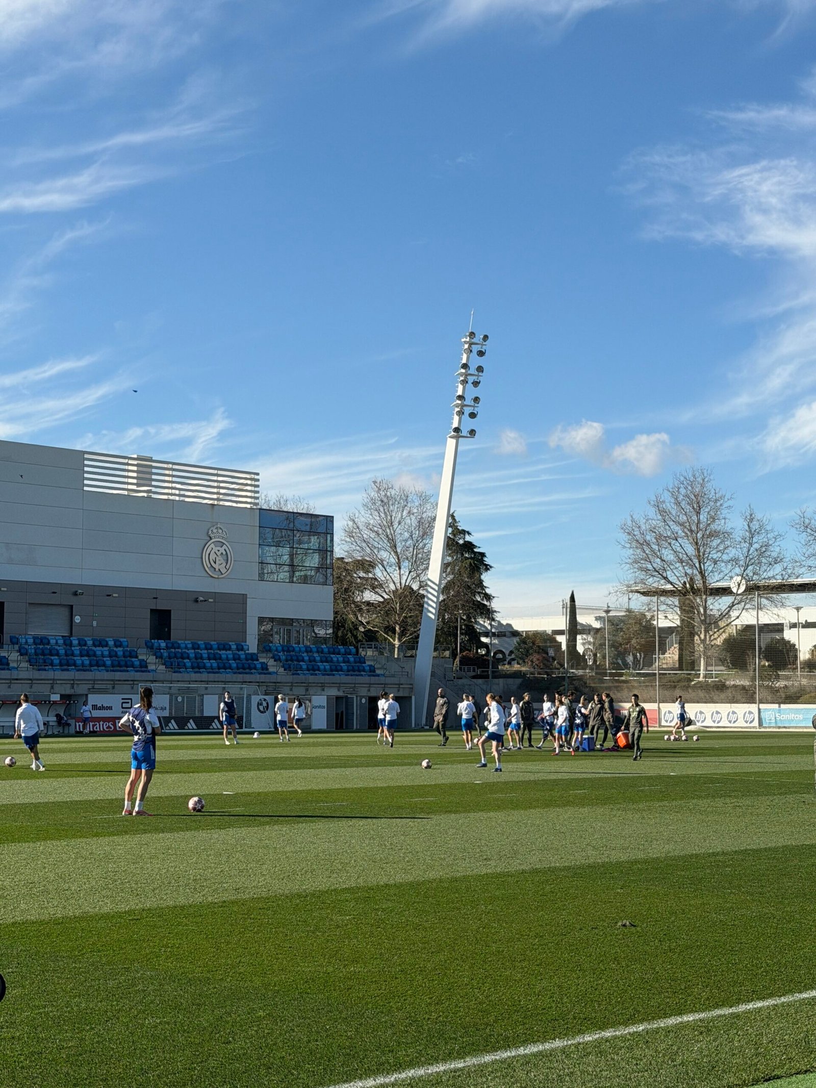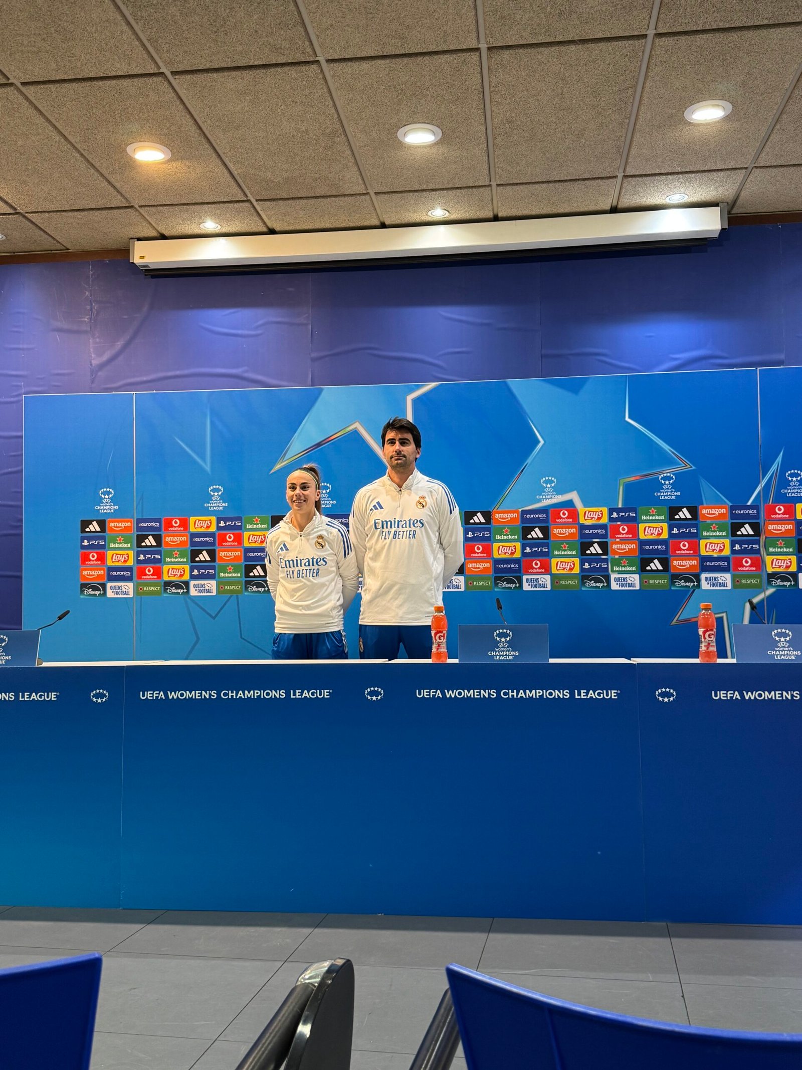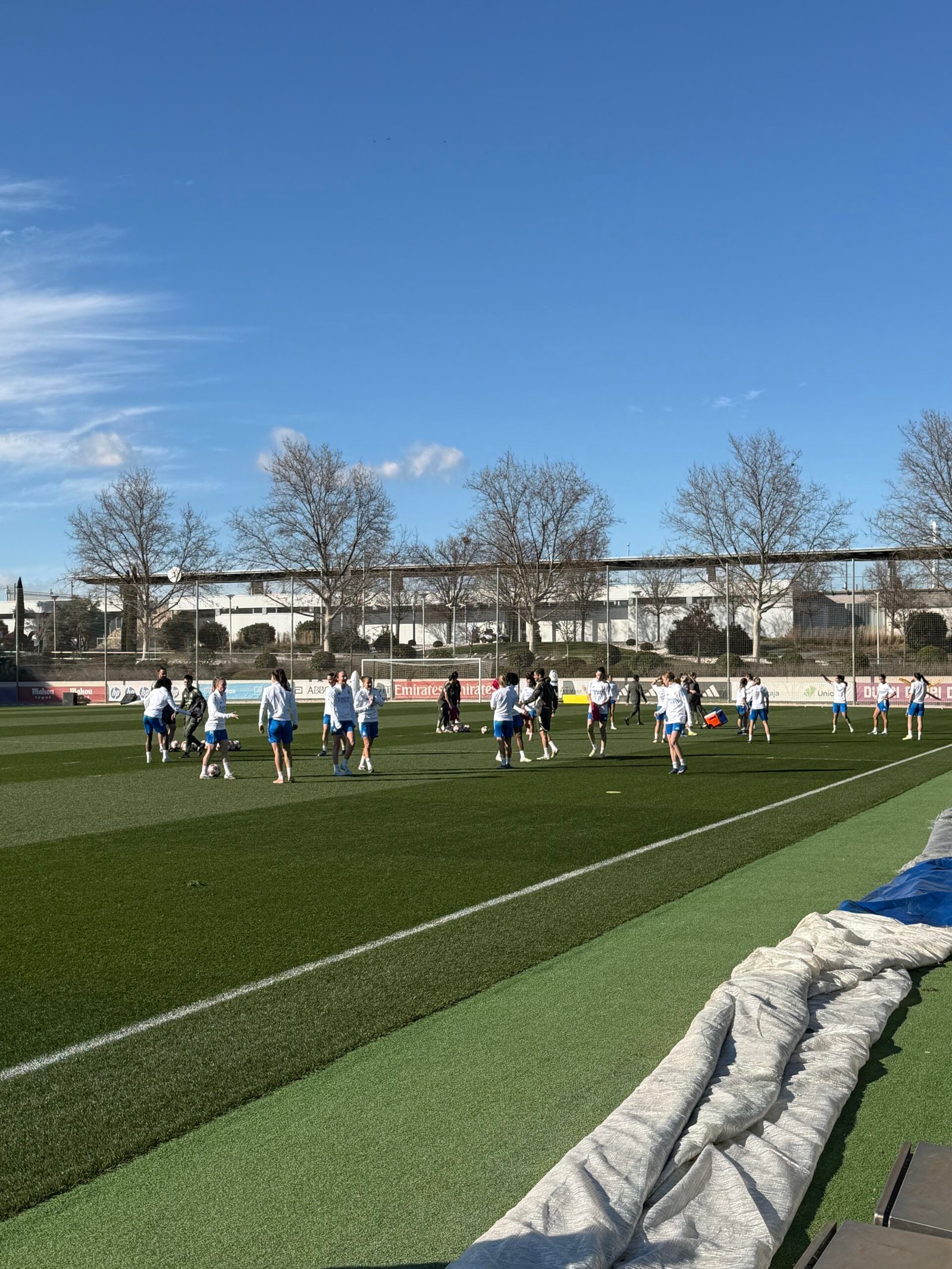 Today (February 17, 2026), I was in attendance at the press conference and training for the UEFA Women’s Champions League match of Real Madrid Femenino against Paris FC on February 18, 2026. Having attended many of the men’s team press conferences and training, I was extremely excited to get to go to the women’s. The press conference included head coach Pau Quesada and Spanish football player Athenea del Castillo.